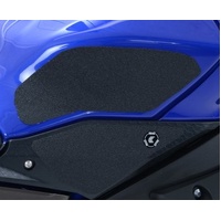 R&G Tank Traction Grip kits are available for many different bike styles and brands, with new applications released regularly. The unique R&G Tank Traction Grip texture was specifically designed to be both soft and durable, providing the rider with the grip and feel he/she needs to assist in better bike control, enabling the rider to maintain a stable body position while cornering and braking, whilst also relieving fatigue and providing the rider with complete confidence allowing him/her to fully focus on the road (or track) ahead instead of slipping and sliding on the tank. Each Tank Traction Grip kit is supplied with precision pre-cut adhesive pieces, designed to fit the intended bike, typically in either 2, 4 or 6 pieces (in total) depending on the shape of the tank and adjoining fairing. The high-strength adhesive backing ensures a highly durable product that will stay exactly where you put it, as well as not affecting or damaging paintwork. Each R&G Tank Traction Grip kit is available in black and ultra-clear finishes to blend into your bike’s paintwork or stand out, depending on your preference. R&G works in both wet and dry conditions and is equally at home on the track as it is on the commute home! Please note: R&G Tank Traction Grips now come with a 25mm diameter stick on emblem. This Tank Traction Grip kit has been specially designed for the Yamaha YZF-R1/R1M '15-'19. Made in the UK.