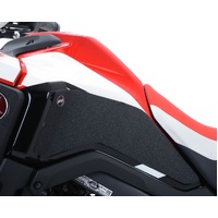 R&G Tank Traction Grip kits are available for many different bike styles and brands, with new applications released regularly. The unique R&G Traction Grip texture was specifically designed to be both soft and durable, providing the rider with the grip and feel he/she needs to assist in better bike control, enabling the rider to maintain a stable body position while cornering and braking, whilst also relieving fatigue and providing the rider with complete confidence allowing him/her to fully focus on the road (or track) ahead instead of slipping and sliding on the tank. Each Tank Traction Grip kit is supplied with precision pre-cut adhesive pieces, designed to fit the intended bike, typically in either 2, 4 or 6 pieces (in total) depending on the shape of the tank and adjoining fairing. The high-strength adhesive backing ensures a highly durable product that will stay exactly where you put it, as well as not affecting or damaging paintwork. Each R&G Tank Traction Grip kit is available in black and ultra-clear finishes to blend into your bike’s paintwork or stand out, depending on your preference. R&G Tank Traction Grips work in both wet and dry conditions and is equally at home on the track as it is on the commute home! Please note: R&G Tank Traction Grips now come with a 25mm diameter stick on emblem. This 2 piece R&G Tank Traction Grip kit has been specially designed for the Honda Africa Twin (CRF1000L) '16- models. Made in the UK.