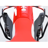 R&G Tank Traction Grip kits are available for many different bike styles and brands, with new applications released regularly. The unique R&G Traction Grip texture was specifically designed to be both soft and durable, providing the rider with the grip and feel he/she needs to assist in better bike control, enabling the rider to maintain a stable body position while cornering and braking, whilst also relieving fatigue and providing the rider with complete confidence allowing him/her to fully focus on the road (or track) ahead instead of slipping and sliding on the tank. Each Tank Traction Grip kit is supplied with precision pre-cut adhesive pieces, designed to fit the intended bike, typically in either 2, 4 or 6 pieces (in total) depending on the shape of the tank and adjoining fairing. The high-strength adhesive backing ensures a highly durable product that will stay exactly where you put it, as well as not affecting or damaging paintwork. Each R&G Tank Traction Grip kit is available in black and ultra-clear finishes to blend into your bike’s paintwork or stand out, depending on your preference. R&G Tank Traction Grips work in both wet and dry conditions and is equally at home on the track as it is on the commute home! Please note: R&G Tank Traction Grips now come with a 25mm diameter stick on emblem. This 2 piece R&G Tank Traction Grip kit has been specially designed for the Honda Africa Twin (CRF1000L) '16- models. Made in the UK.