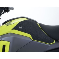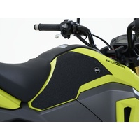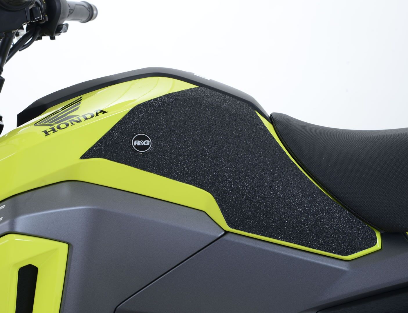 R&G Tank Traction Grip kits are available for many different bike styles and brands, with new applications released regularly. The unique R&G Traction Grip texture was specifically designed to be both soft and durable, providing the rider with the grip and feel he/she needs to assist in better bike control, enabling the rider to maintain a stable body position while cornering and braking, whilst also relieving fatigue and providing the rider with complete confidence allowing him/her to fully focus on the road (or track) ahead instead of slipping and sliding on the tank. Each Tank Traction Grip kit is supplied with precision pre-cut adhesive pieces, designed to fit the intended bike, typically in either 2, 4 or 6 pieces (in total) depending on the shape of the tank and adjoining fairing. The high-strength adhesive backing ensures a highly durable product that will stay exactly where you put it, as well as not affecting or damaging paintwork. Each R&G Tank Traction Grip kit is available in black and ultra-clear finishes to blend into your bike’s paintwork or stand out, depending on your preference. R&G Tank Traction Grips work in both wet and dry conditions and is equally at home on the track as it is on the commute home! Please note: R&G Tank Traction Grips now come with a 25mm diameter stick on emblem. This 2 piece R&G Tank Traction Grip kit has been specially designed for the Honda MSX125 GROM '16-'20 models. Made in the UK.