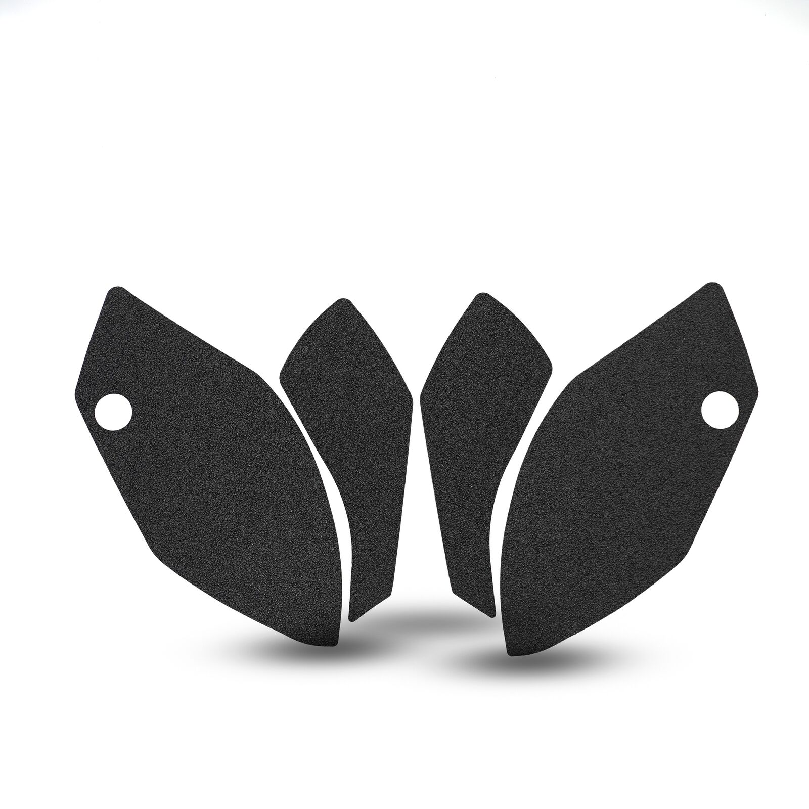 R&G Tank Traction Grip kits are available for many different bike styles and brands, with new applications released regularly. The unique R&G Tank Traction Grip texture was specifically designed to be both soft and durable, providing the rider with the grip and feel he/she needs to assist in better bike control, enabling the rider to maintain a stable body position while cornering and braking, whilst also relieving fatigue and providing the rider with complete confidence allowing him/her to fully focus on the road (or track) ahead instead of slipping and sliding on the tank. Each Tank Traction Grip kit is supplied with precision pre-cut adhesive pieces, designed to fit the intended bike, typically in either 2, 4 or 6 pieces (in total) depending on the shape of the tank and adjoining fairing. The high-strength adhesive backing ensures a highly durable product that will stay exactly where you put it, as well as not affecting or damaging paintwork. Each R&G Tank Traction Grip kit is available in black and ultra-clear finishes to blend into your bike’s paintwork or stand out, depending on your preference. R&G works in both wet and dry conditions and is equally at home on the track as it is on the commute home! Please note: R&G Tank Traction Grips now come with a 25mm diameter stick on emblem. This 4-piece Tank Traction Grip set has been specially designed for the BMW R1200 GS '17- models. Made in the UK.