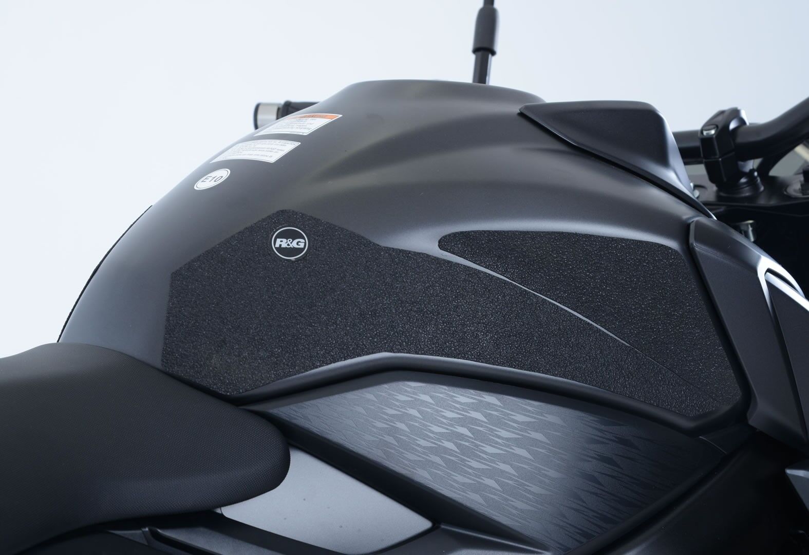 R&G Tank Traction Grip kits are available for many different bike styles and brands, with new applications released regularly. The unique R&G Traction Grip texture was specifically designed to be both soft and durable, providing the rider with the grip and feel he/she needs to assist in better bike control, enabling the rider to maintain a stable body position while cornering and braking, whilst also relieving fatigue and providing the rider with complete confidence allowing him/her to fully focus on the road (or track) ahead instead of slipping and sliding on the tank.