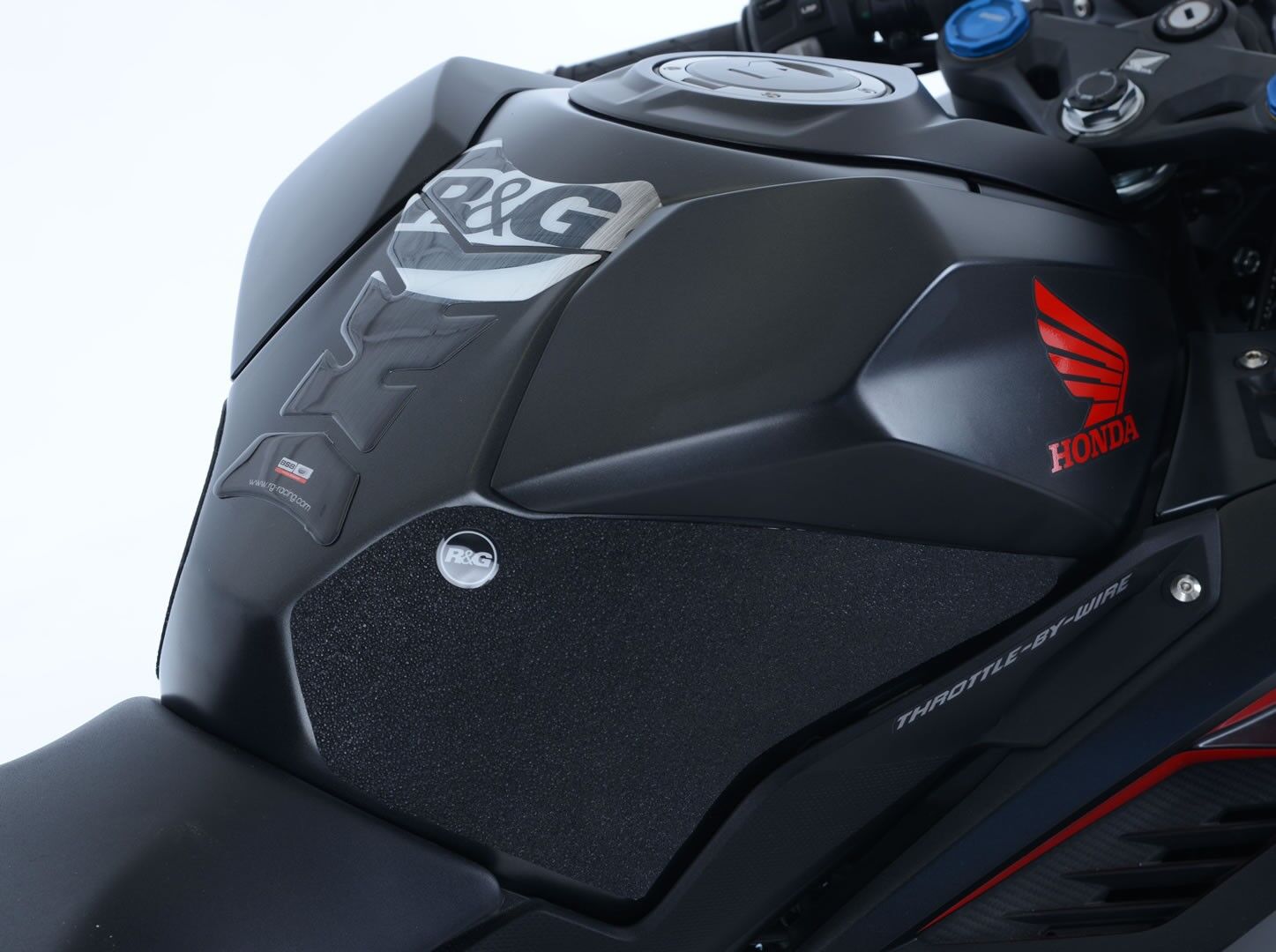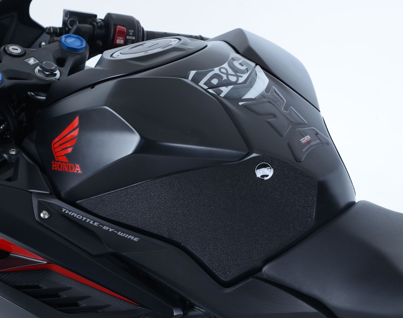 R&G Tank Traction Grip kits are available for many different bike styles and brands, with new applications released regularly. The unique R&G Traction Grip texture was specifically designed to be both soft and durable, providing the rider with the grip and feel he/she needs to assist in better bike control, enabling the rider to maintain a stable body position while cornering and braking.