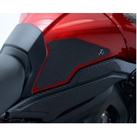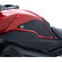 R&G Tank Traction Grip kits are available for many different bike styles and brands, with new applications released regularly. The unique R&G tank texture was specifically designed to be both soft and durable, providing the rider with the grip and feel he/she needs to assist in better bike control, enabling the rider to maintain a stable body position while cornering and braking, whilst also relieving fatigue and providing the rider with complete confidence allowing him/her to fully focus on the road (or track) ahead instead of slipping and sliding on the tank. Each Tank Traction Grip kit is supplied with precision pre-cut adhesive pieces, designed to fit the intended bike, typically in either 2, 4 or 6 pieces (in total) depending on the shape of the tank and adjoining fairing. The high-strength adhesive backing ensures a highly durable product that will stay exactly where you put it, as well as not affecting or damaging paintwork. Each R&G Tank Traction Grip kit is available in black and ultra-clear finishes to blend into your bike’s paintwork or stand out, depending on your preference. R&G works in both wet and dry conditions and is equally at home on the track as it is on the commute home! Please note: R&G Tank Traction Grips now come with a 25mm diameter stick on emblem. This Tank Traction Grip kit has been specially designed for the Yamaha MT-09 Tracer '15- & Tracer 900GT '18-. Made in the UK.