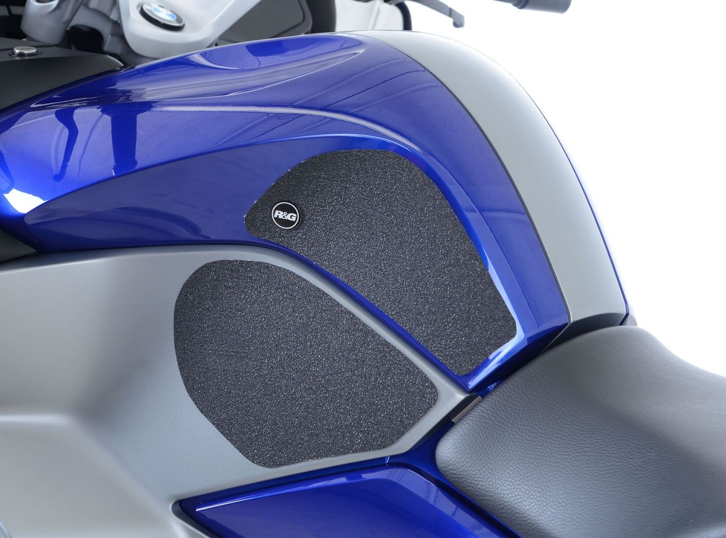 Please note: R&G Tank Traction Grips now come with a 25mm diameter stick on emblem. This Tank Traction Grip has been specially designed for the BMW R1200RT '14- & R1250RT '19-. Made in the UK.