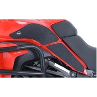R&G Tank Traction Grip kits are available for many different bike styles and brands, with new applications released regularly. The unique R&G Tank Traction Grip texture was specifically designed to be both soft and durable, providing the rider with the grip and feel he/she needs to assist in better bike control, enabling the rider to maintain a stable body position while cornering and braking, whilst also relieving fatigue and providing the rider with complete confidence allowing him/her to fully focus on the road (or track) ahead instead of slipping and sliding on the tank. Each Tank Traction Grip kit is supplied with precision pre-cut adhesive pieces, designed to fit the intended bike, typically in either 2, 4 or 6 pieces (in total) depending on the shape of the tank and adjoining fairing. The high-strength adhesive backing ensures a highly durable product that will stay exactly where you put it, as well as not affecting or damaging paintwork. Each R&G Tank Traction Grip kit is available in black and ultra-clear finishes to blend into your bike’s paintwork or stand out, depending on your preference. R&G Tank Traction Grips work in both wet and dry conditions and is equally at home on the track as it is on the commute home! Please note: R&G Tank Traction Grips now come with a 25mm diameter stick on emblem. This 4 piece R&G Tank Traction Grip kit has been specially designed for the Ducati Multistrada 950 '17- models. Made in the UK.