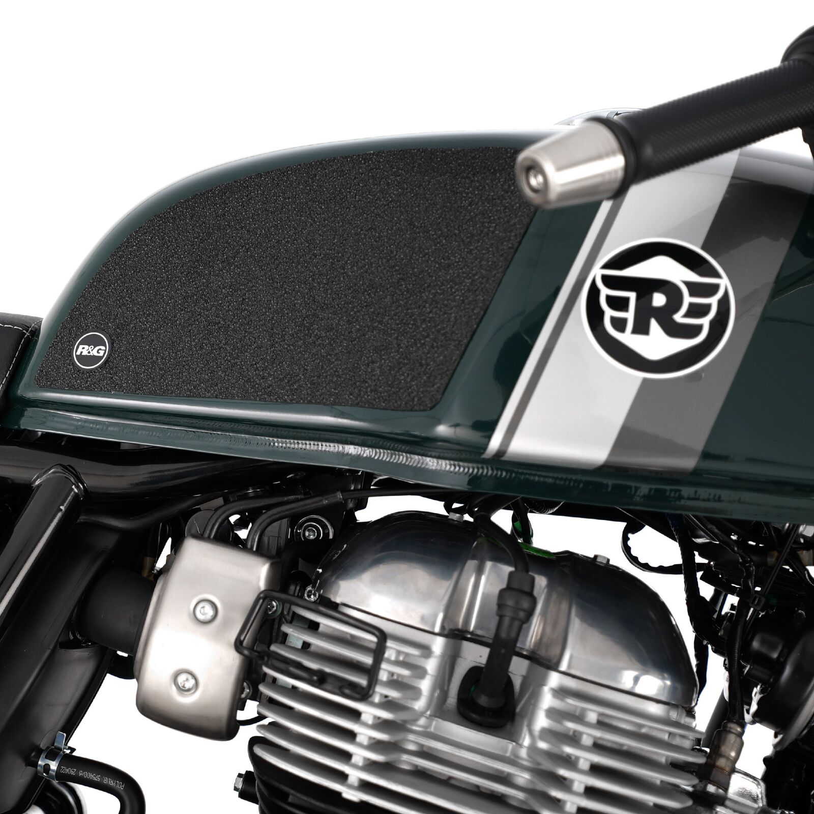 This 2-piece R&G Tank Traction Grip kit has been specially designed for the Royal Enfield Continental GT 650 ’19- models.