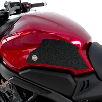 R&G Tank Traction Grip kits are available for many different bike styles and brands, with new applications released regularly. The unique R&G Traction Grip texture was specifically designed to be both soft and durable, providing the rider with the grip and feel he/she needs to assist in better bike control, enabling the rider to maintain a stable body position while cornering and braking, whilst also relieving fatigue and providing the rider with complete confidence allowing him/her to fully focus on the road (or track) ahead instead of slipping and sliding on the tank. Each Tank Traction Grip kit is supplied with precision pre-cut adhesive pieces, designed to fit the intended bike, typically in either 2, 4 or 6 pieces (in total) depending on the shape of the tank and adjoining fairing. The high-strength adhesive backing ensures a highly durable product that will stay exactly where you put it, as well as not affecting or damaging paintwork. Each R&G Tank Traction Grip kit is available in black and ultra-clear finishes to blend into your bike’s paintwork or stand out, depending on your preference. R&G Tank Traction Grips work in both wet and dry conditions and is equally at home on the track as it is on the commute home! Please note: R&G Tank Traction Grips now come with a 25mm diameter stick on emblem. This 2 piece R&G Tank Traction Grip kit has been specially designed for the Honda CB650R '19-, CBR650R '19- & CB650F '19- model. Made in the UK.