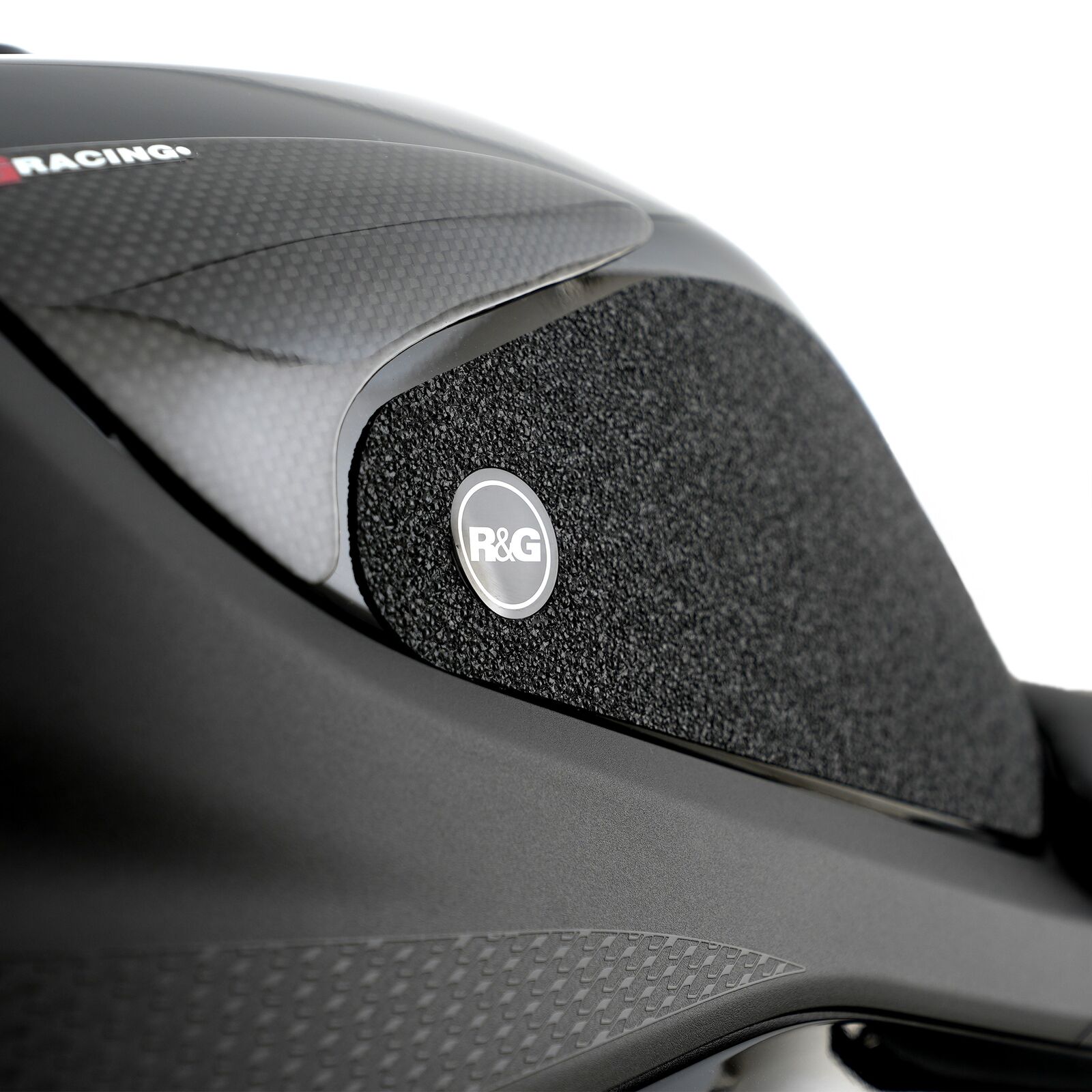 R&G Tank Traction Grip kits are available for many different bike styles and brands, with new applications released regularly. The unique R&G Tank Traction Grip texture was specifically designed to be both soft and durable, providing the rider with the grip and feel he/she needs to assist in better bike control, enabling the rider to maintain a stable body position while cornering and braking, whilst also relieving fatigue and providing the rider with complete confidence allowing him/her to fully focus on the road (or track) ahead instead of slipping and sliding on the tank.