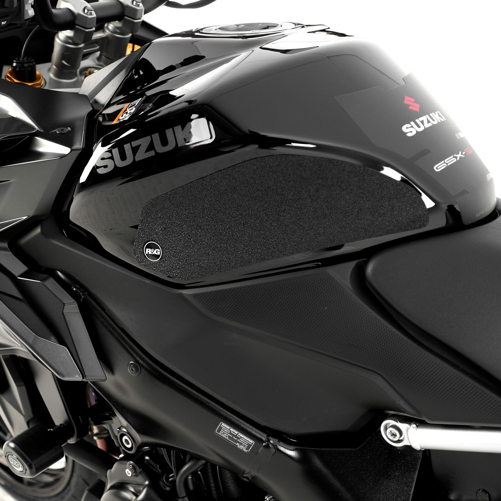 This 2-piece R&G Tank Traction Grips have been specially designed for the Suzuki  GSX-S 950 '21-, GSX-S1000 '15-'20, GSX-S1000 ABS '15-'20 , GSX-S1000 FA '15-'20 & GSX-S1000 GT '22-, Suzuki GSX- S1000 GX '24-