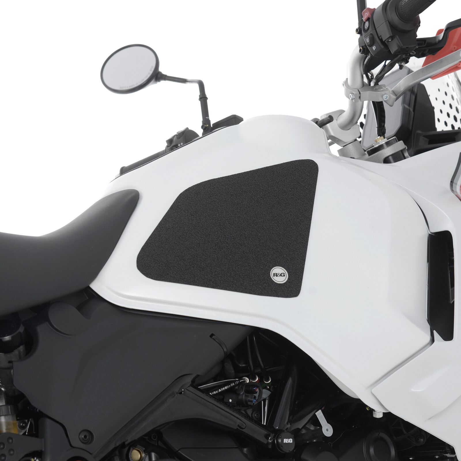 This 2-piece R&G Tank Traction Grip kit has been specially designed for the Ducati DesertX '22- '24 models.