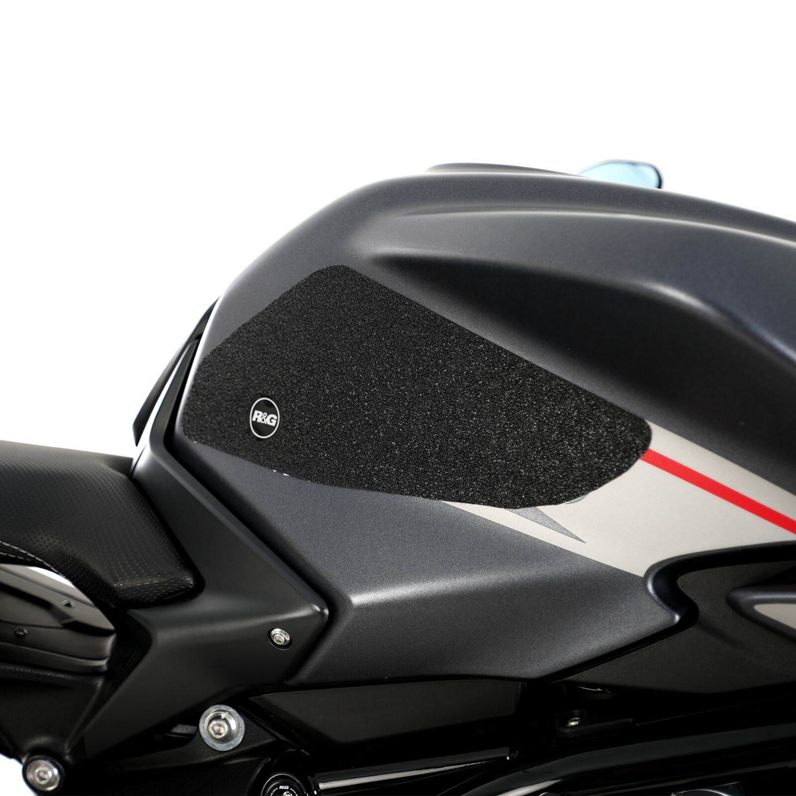 R&G Tank Traction Grip kits are available for many different bike styles and brands, with new applications released regularly. The unique R&G Traction Grip texture was specifically designed to be both soft and durable, providing the rider with the grip and feel he/she needs to assist in better bike control, enabling the rider to maintain a stable body position while cornering and braking, whilst also relieving fatigue and providing the rider with complete confidence allowing him/her to fully focus on the road (or track) ahead instead of slipping and sliding on the tank.