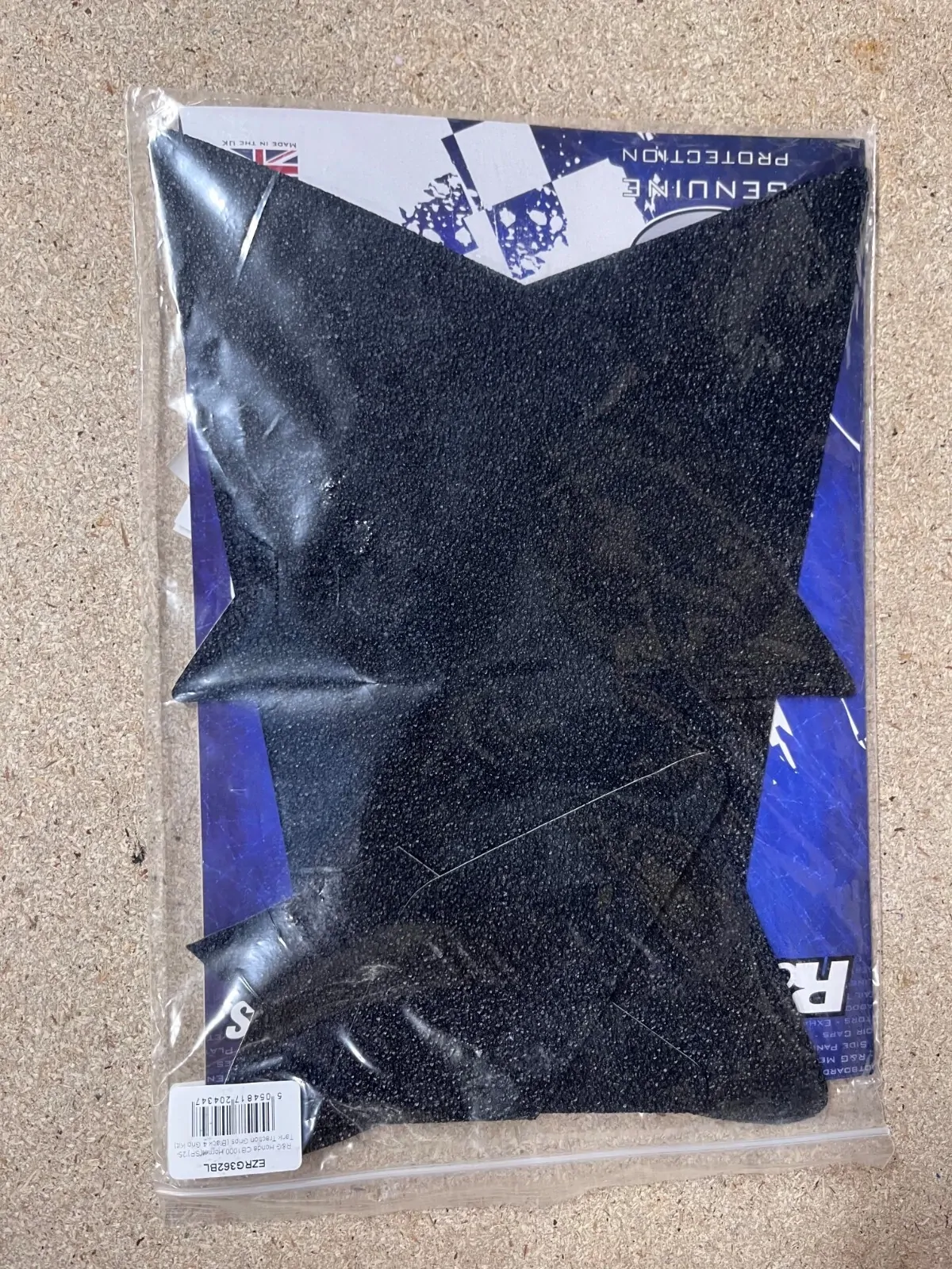 R&G Tank Traction Grip kits are available for many different bike styles and brands, with new applications released regularly. The unique R&G Tank Traction Grip texture was specifically designed to be both soft and durable, providing the rider with the grip and feel he/she needs to assist in better bike control, enabling the rider to maintain a stable body position while cornering and braking, whilst also relieving fatigue and providing the rider with complete confidence allowing him/her to fully focus on the road (or track) ahead instead of slipping and sliding on the tank. Each Tank Traction Grip kit is supplied with precision pre-cut adhesive pieces, designed to fit the intended bike, typically in either 2, 4 or 6 pieces (in total) depending on the shape of the tank and adjoining fairing. The high-strength adhesive backing ensures a highly durable product that will stay exactly where you put it, as well as not affecting or damaging paintwork. Each R&G Tank Traction Grip kit is available in black and ultra-clear finishes to blend into your bike’s paintwork or stand out, depending on your preference. R&G works in both wet and dry conditions and is equally at home on the track as it is on the commute home! Please note: R&G Tank Traction Grips now come with a 25mm diameter stick on emblem. This 4-piece Tank Traction Grip kit has been specially designed for the Honda CB1000 Hornet/ SP '25- models. Made in the UK.