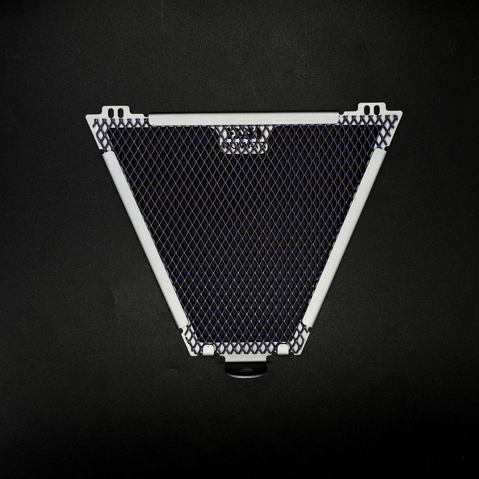 Available for the Ducati Panigale V4, V4S and Speciale  models, this R&G Titanium Oil Cooler Guard is both lightweight and super strong, thanks to its real Titanium (ASTM B265 Grade 1) mesh construction encased in a seamless aluminium frame. This specific R&G Oil Cooler Guard is made from an expanded ASTM B265 Grade 1 Titanium sheet and features a neat, seamless aluminium frame, securely holding the guard in place (utilising existing mounting or brackets). Titanium anodised for a fantastic looking, long-lasting product as well as (most importantly) protecting your expensive and vulnerable radiator from damage. The titanium mesh is twice as strong as standard aluminium mesh guards, providing excellent protection from road debris such as stones, bugs, tyre rubber etc, flicked up from either your own front-wheel or other riders either on track or on the road. Currently used by British Superbike Championship (BSB) race teams "Riders BMW" and the "RAF Reserves BSB Racing", as well as Isle of Man race teams and plus numerous other race bikes worldwide!