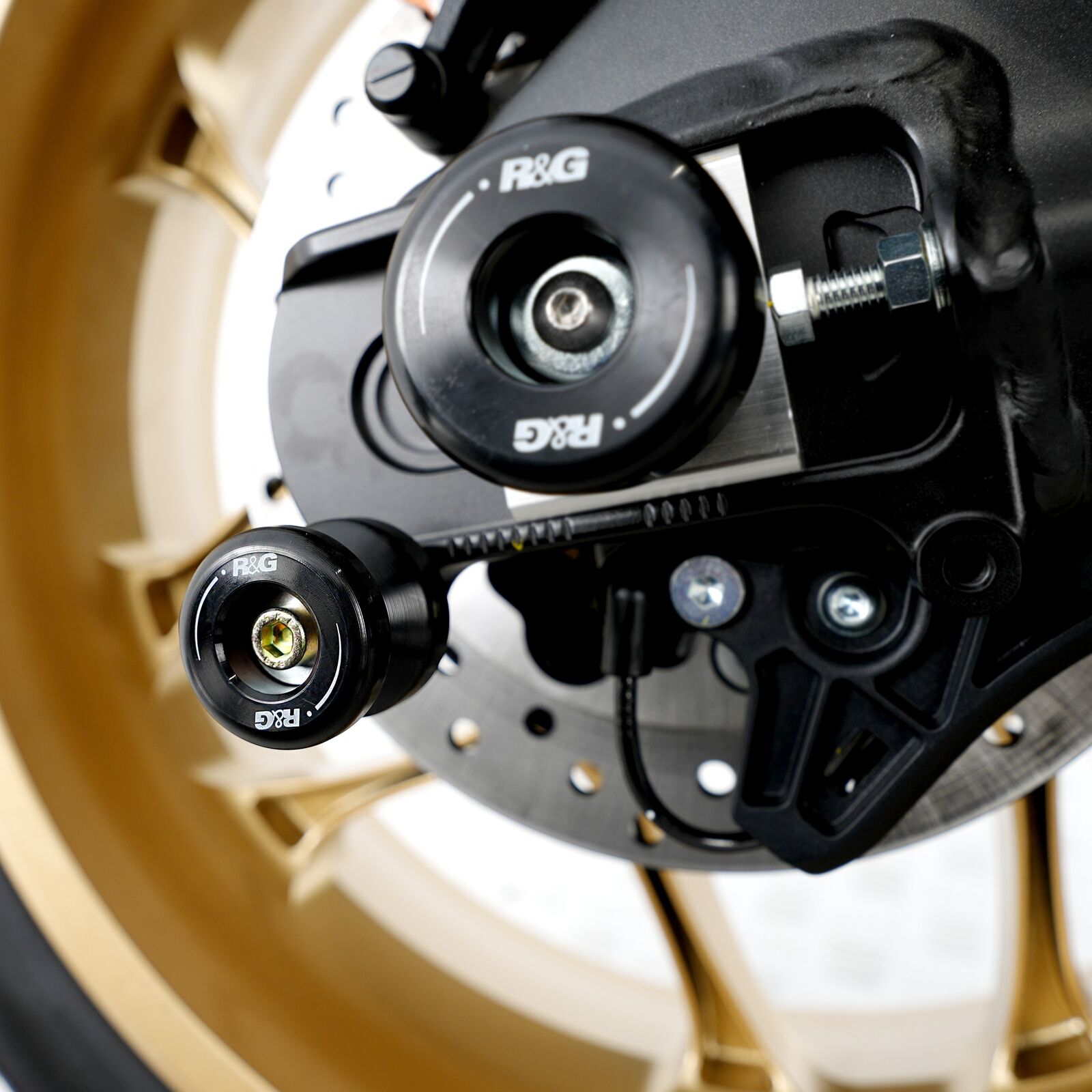 These cotton reels mount directly into the mounting points on the rear swingarm offering the best of both worlds in terms of crash protection and functionality with the ability to use R&G cotton reels, which offer excellent crash protection to those components located towards the rear as well as the ability to lift up the rear of the bike with a paddock stand for maintenance and tyre changes. Available in Black, Orange or White . Sold in Pairs.