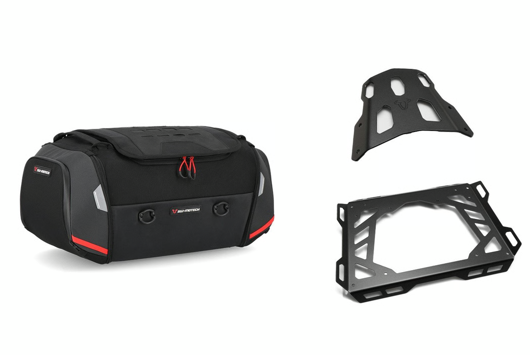 SW-MOTECH manufactures the PRO series rear bag in unbreakable 1680 D ballistic nylon, and the luggage rack in solid aluminum alloy. To fix the support, the existing fixing points on the motorcycle are used, specific to each model and designed with a high resistance capacity.