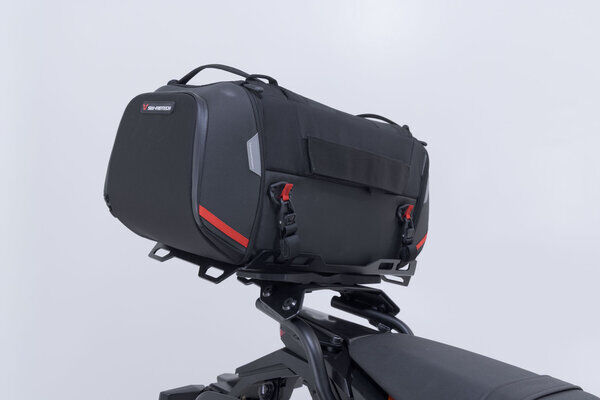 The tail bag from the PRO series is made by SW-MOTECH from indestructible 1680 D Ballistic Nylon and the rack from robust aluminum alloy. The rack is attached to resilient bike-specific mounting points on the motorcycle.