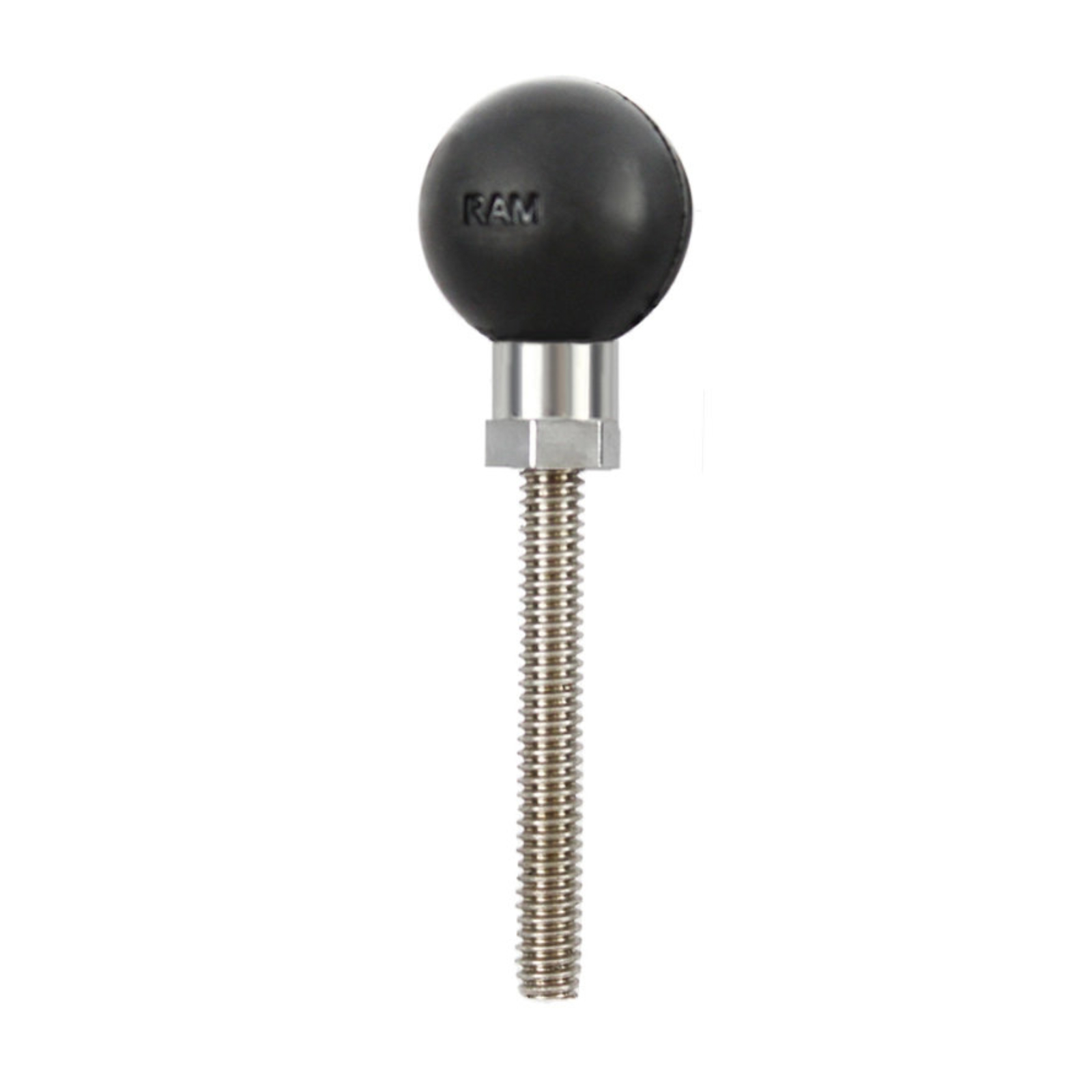 Connect another device to your existing RAM® Mount withthe RAM-B-273U Ball Base Adapter. This ball is made up of a 1 ballconnecting to a 1/4 -20 threaded stud with a length of 1.6 . The threads onthis ball replace the bolt in any B-size socket arm and the ball connectsto the middle of the socket arm on the opposite side of the tighteningknob. If you are looking to mount more than one device but cannot locatemultiple mounting points on your motorcycle or vehicle this base is theideal accessory for connecting both devices off of one mountingbase.