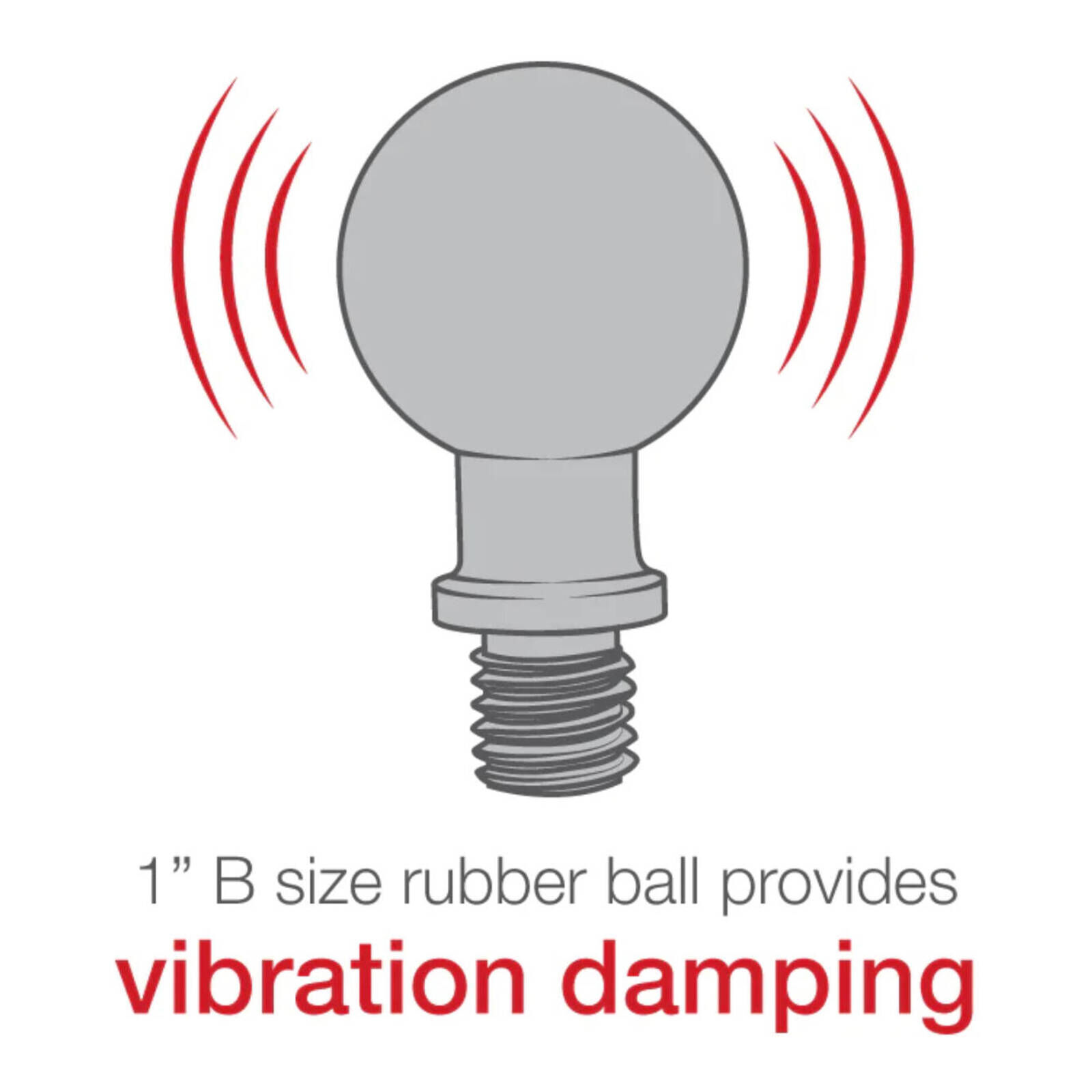 The RAM-B-349-1U includes an M10 x 1.5 pitch male thread connected to a 1 rubber ball. The diameter of the round flange is 14.3mm and the thread length is 10.5mm.