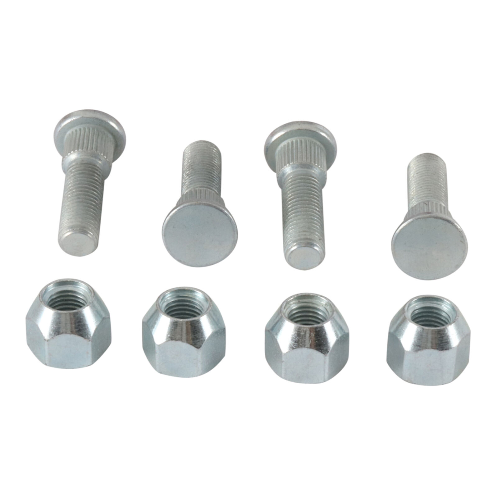 Kit includes components to rebuild one wheel. Includes wheel studs nuts washers and other miscellaneous components.