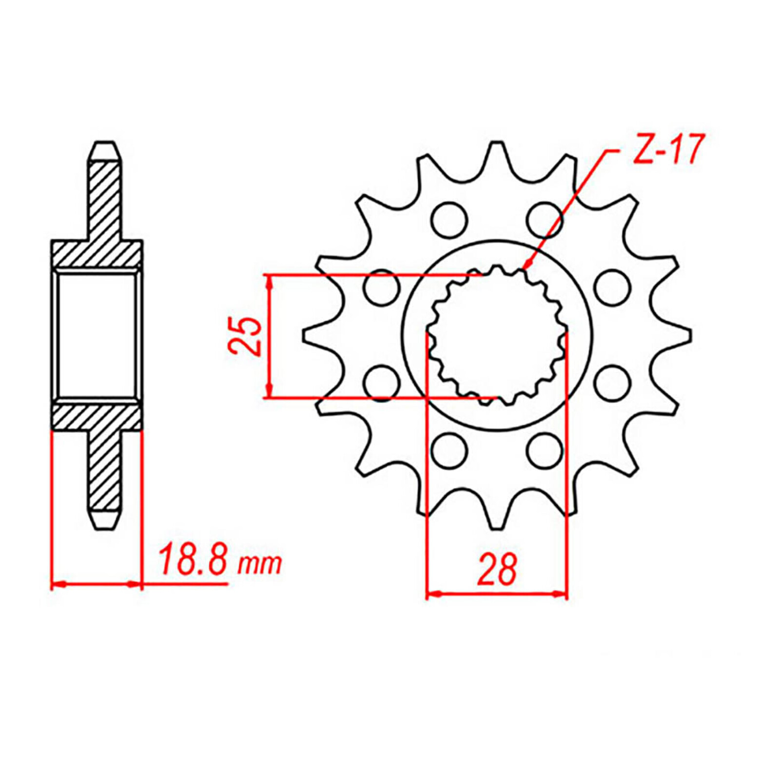 Check the specifications for sprocket teeth and chain size details.