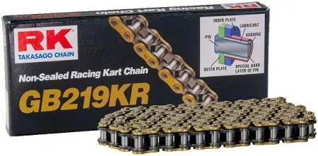 • Product: RK GB219KR-114L Gold racing kart chain.