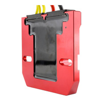 Our new bypass voltage regulator brings back the renowned RMSTATOR Mosfet technology with the RMSTATOR machined aluminum case in a new configuration designed to bypass the main wiring harness and connect the voltage regulator directly to the battery. This configuration has demonstrated a major increase in voltage regulator reliability in real life scenarios over the years.