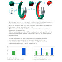 Innovative co-molding production technology which is patent pending by SKF. The rubber compounds are new and different from our previous aftermarket green seals. New metal insert and totally re-designed scraping and oil sealing lips. Open wound DS spring: this is not just a stretched std. spring but a dedicated fork seal spring with open winding.