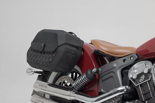 The bike-specific bag carrier can be easily and quickly mounted on to original attachment points on the fender strut. The quick lock system allows LH Legend Gear side bags to be attached and removed in just a few easy hand movements, without the driver foregoing reliable bag fastening.