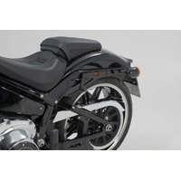 The bike-specific bag carrier can be easily and quickly mounted on to original attachment points on the fender strut. The quick lock system allows LH Legend Gear side bags to be attached and removed in just a few easy hand movements, without the driver foregoing reliable bag fastening.