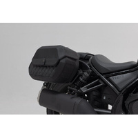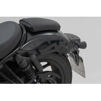 The bike-specific bag carrier can be easily and quickly mounted on to original attachment points on the fender strut. The quick lock system allows LH Legend Gear side bags to be attached and removed in just a few easy hand movements, without the driver foregoing reliable bag fastening.
