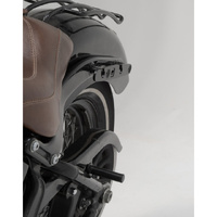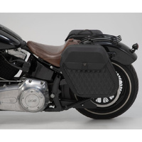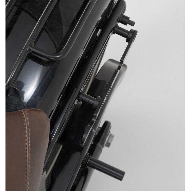 Sw-Motech's SLH side carrier can easily and quickly mount on to original attachment points on the fender strut. A modern mounting system allows LH2 Legend Gear side bags (sold separately) to be attached and removed in just a few easy hand movements, without the driver foregoing reliable bag fastening. It can also be used in combination with original Harley-Davidson accessories such as the sissy bar or rack.