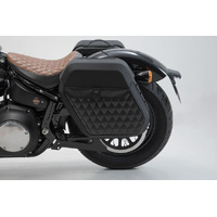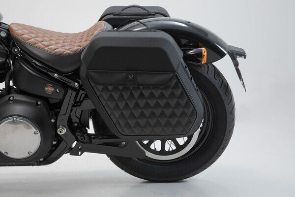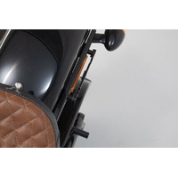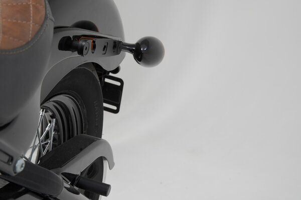 The bike-specific bag carrier can be easily and quickly mounted on to original attachment points on the fender strut. The quick lock system allows LH Legend Gear side bags to be attached and removed in just a few easy hand movements, without the driver foregoing reliable bag fastening.