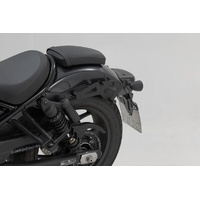 The bike-specific bag carrier can be easily and quickly mounted on to original attachment points on the fender strut. The quick lock system allows LH Legend Gear side bags to be attached and removed in just a few easy hand movements, without the driver foregoing reliable bag fastening.