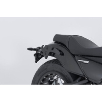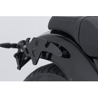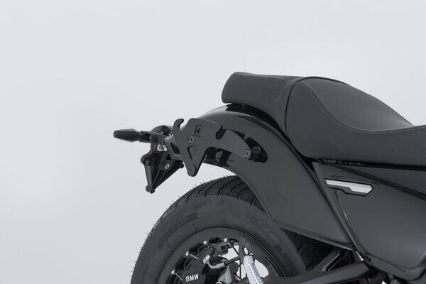 The bike-specific bag carrier can be easily and quickly mounted on to original attachment points on the fender strut. The quick lock system allows LH Legend Gear side bags to be attached and removed in just a few easy hand movements, without the driver foregoing reliable bag fastening.