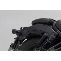 The bike-specific bag carrier can be easily and quickly mounted on to original attachment points on the fender strut. The quick lock system allows LH Legend Gear side bags to be attached and removed in just a few easy hand movements, without the driver foregoing reliable bag fastening.