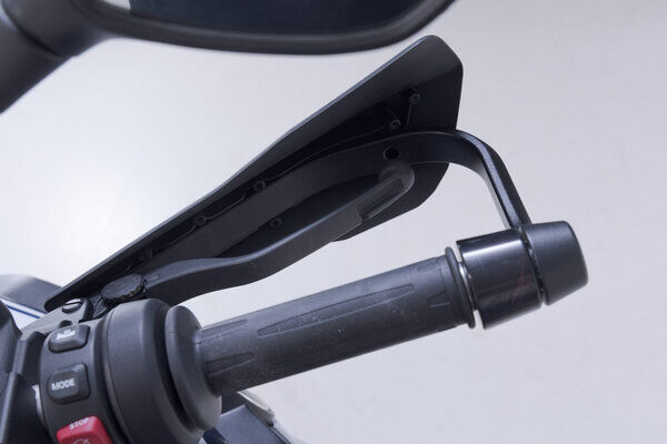 This handguard kit protects your bike's handlebar controls in the event of a fall and your hands from the elements, such as cold air and rain. The basis is a sturdy aluminum bracket to which the Sport handguard shells are attached. The shells' impact-resistant plastic is flexible and offers the excellent protection against external factors. Their slim shape and matt black look also provide a stylish design element on your handlebars. The separately available extension sets provide even more weather protection.