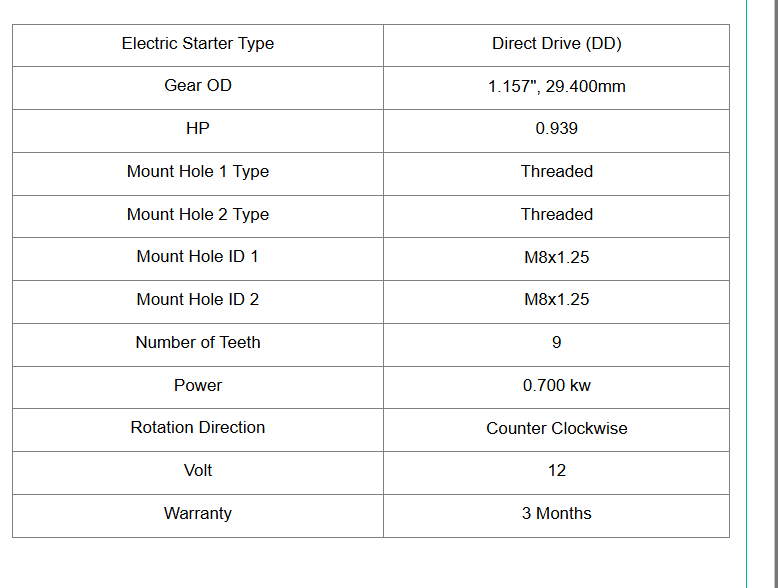 Product Type Starter Motor