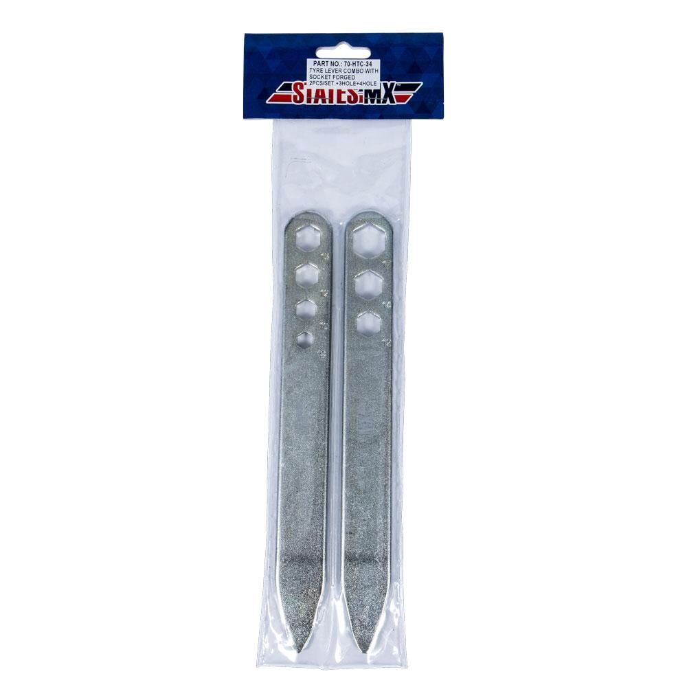 High tensile strength steel levers with the perfect shape and size working end to remove or replace motorcycle tyres.