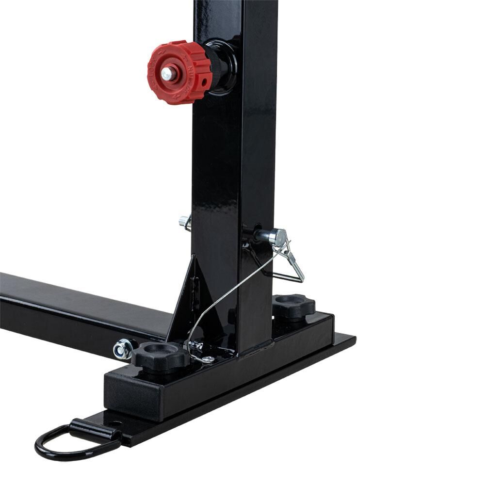 The States MX Moto Lock bike carrier clamp securely holds your motocross bike in place during transport, without the need for tie-down straps, floor anchors, or wheel chocks. By clamping the bike via the footpegs, it reduces pressure on the fork seals and frees up valuable space in your trailer, allowing room for more bikes or gear.