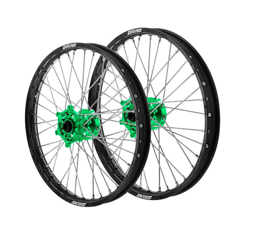States MX Wheel Set for 2001-2024 Kawasaki KX85 - 17/14 Black/Green