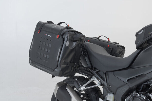 SW-MOTECH has created this combination of PRO side carriers and two SysBag WP L bags to get the Honda CB 500 ready for the next motorcycle adventure. The resilient, detachable carriers give the waterproof offroad bags optimal support over any terrain.