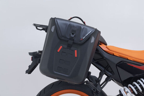 This system contains the corresponding SLC side carriers and two SysBags WP M for the KTM 125 / 390 Duke. The SysBag WP system means you'll be perfectly equipped for your next trip and your luggage will stay dry in all weather conditions.