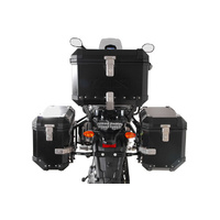 This set is the all-round, care-free pack for any tour. The water and dust-tight TRAX ADV premium aluminum case, two side cases and a top case offer your luggage the best protection. The bike-specific development of the detachable PRO side carrier and the ADVENTURE-RACK guarantee an optimal fit and secure grip for aluminium cases.