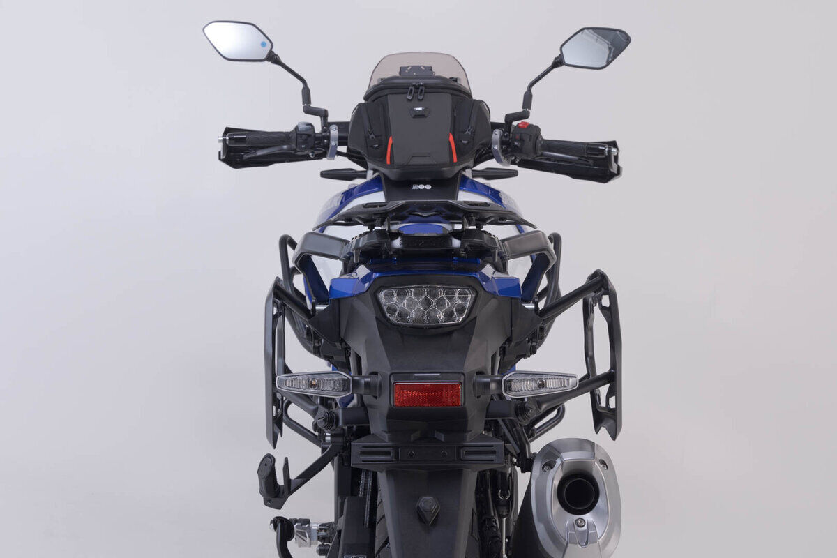 The Adventure set Luggage contains the PRO side carriers and ADVENTURE RACK that match the Suzuki V-Strom 1050 / XT. The side carrier and rack are fastened to the bike-specific attachment points and offer sturdy support for the black TRAX ADV aluminium cases.
