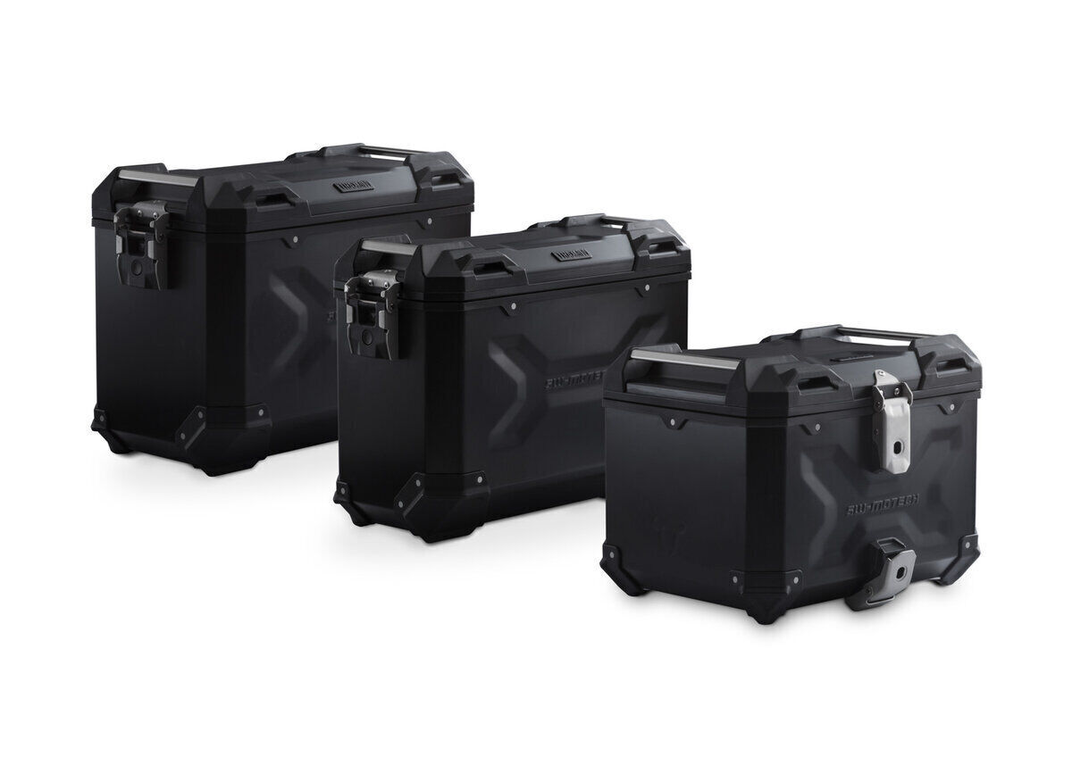 This set is the all-round, care-free pack for any tour. The water and dust-tight TRAX ADV premium aluminum case, two side cases and a top case offer your luggage the best protection. The bike-specific development of the detachable PRO side carrier and the ADVENTURE-RACK guarantee an optimal fit and secure grip for aluminium cases.