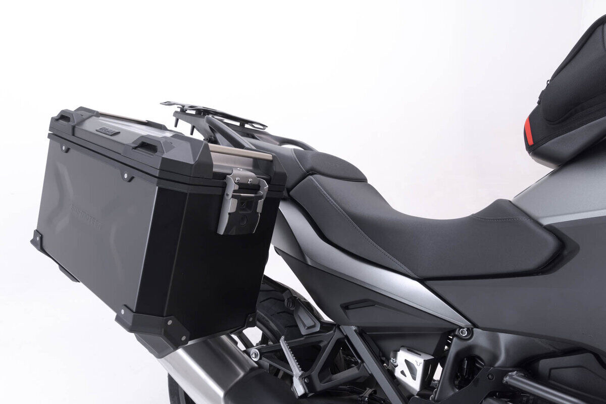 - Also available as a TRAX ADV aluminum case system with 2 side cases, bike-specific side carriers, adapters and lock set.