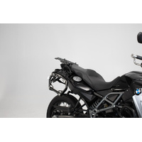 Durable TRAX ADV aluminum cases feel at home on any stretch of road: embossed patterns add stability to the 1.5 millimeter-thick, welded aluminum wall material. A completely removable lid with carrying handles made of anodized aluminum and quick release fasteners makes loading and unloading of motorcycle luggage easier; the beveled side edge provides high ground clearance when cornering. With this complete solution, you have all the components you need to travel with TRAX: two waterproof TRAX ADV side cases, two detachable SW-MOTECH side carriers, adapter kit, lock set, lid limiter and anti-theft protection at an attractive price.
