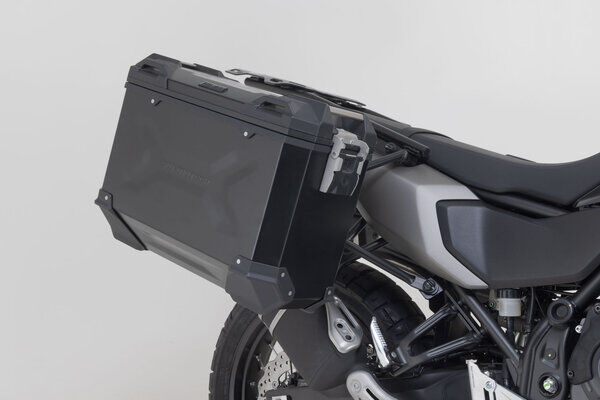 SW-MOTECH has built the black aluminum case system suitable for the Yamaha Ténéré 700 with extremely durable, bike-specific PRO side carriers.