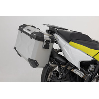 SW-MOTECH makes this silver aluminum case system suitable for the Husqvarna Norden 901, featuring extremely durable, bike-specific PRO side carriers.
